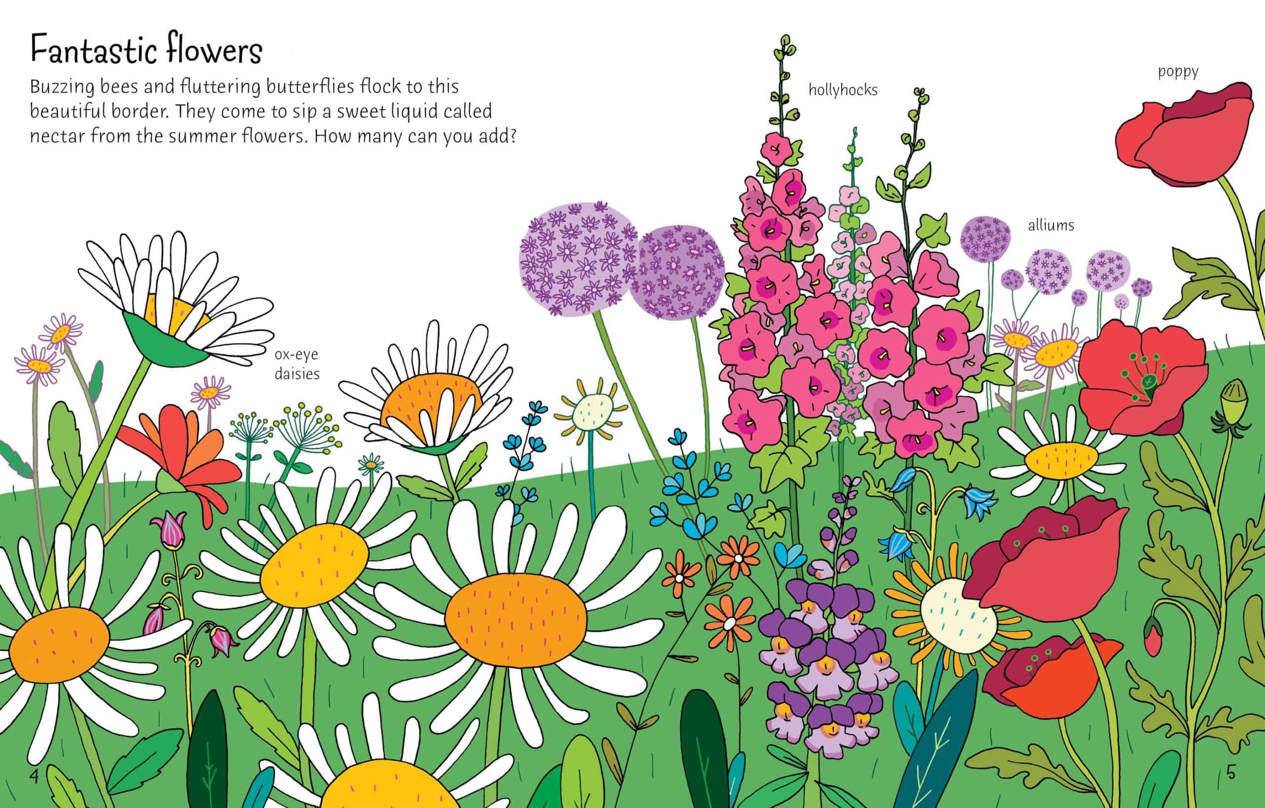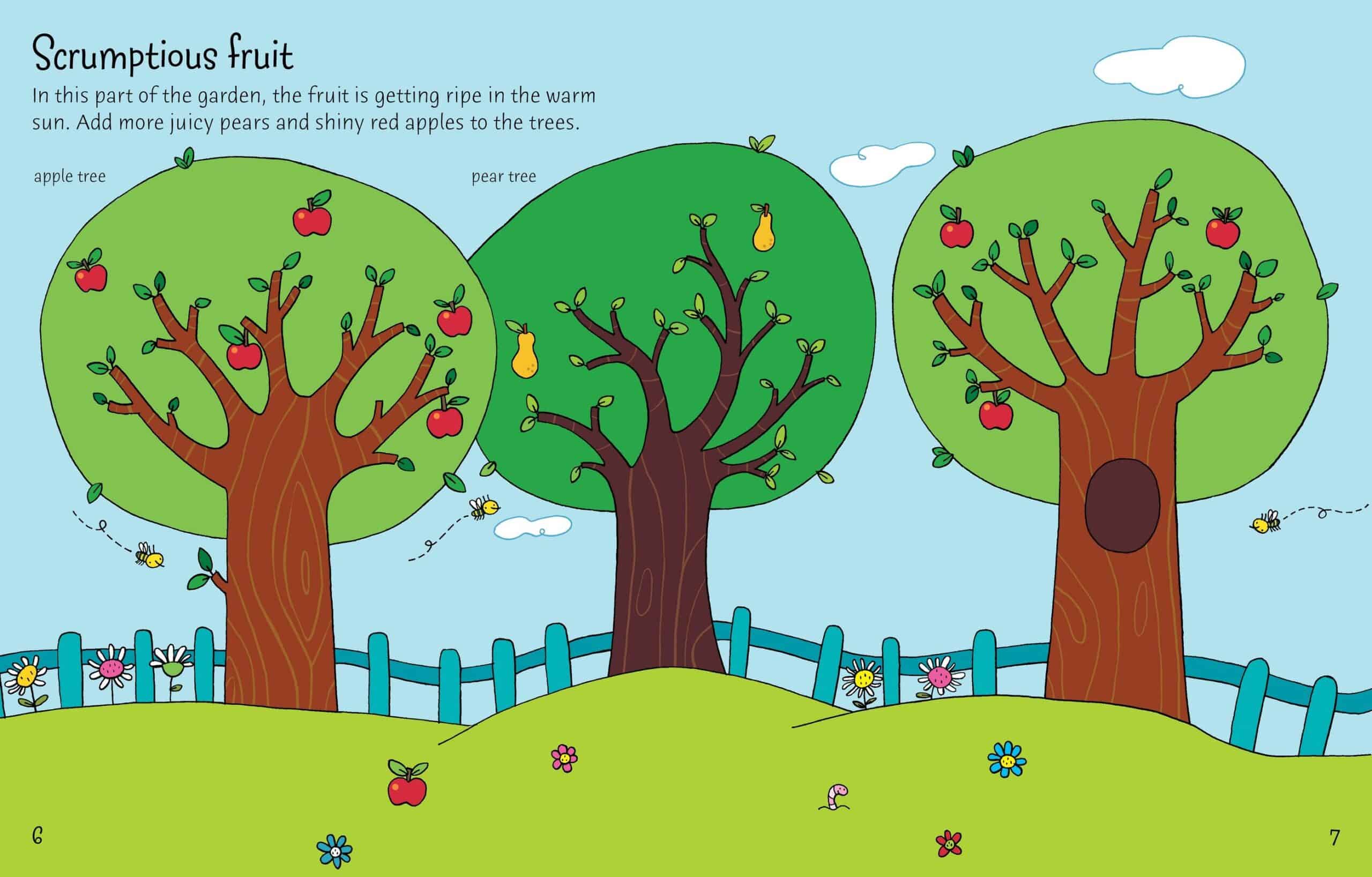Cartea contine peste 250 de autocolante, fiecare dintre ele avand rolul de a completa diverse scene din gradina. Copii vor avea ocazia sa descopere si sa aplice stickerele in spatiile corespunzătoare, oferind o experienta de invatare dinamică si distractiva. Aranjamentele vizuale sunt concepute pentru a capta atentia celor mici si a-i atrage intr-o lume fantastica, plina de culoare si viata.