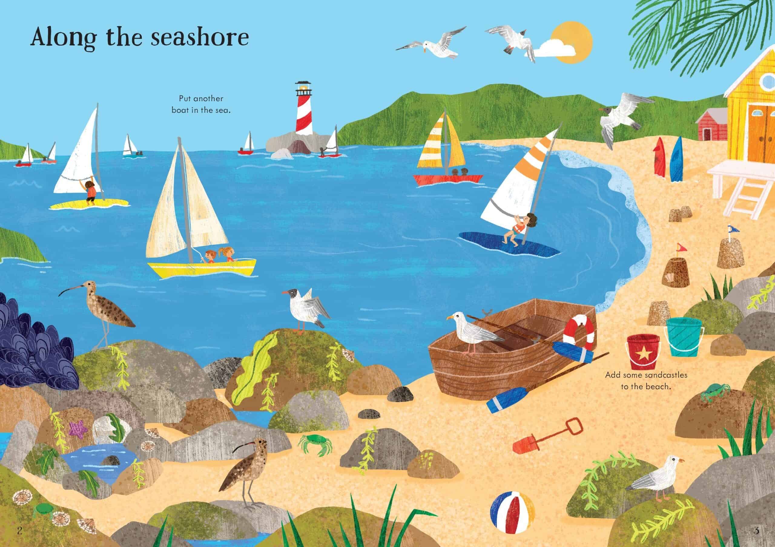 Descoperiti lumea fascinanta a malului marii cu „Little First Stickers Seashore” de la Usborne, o carte interactiva special conceputa pentru cei mici. Cu ajutorul acestei carti cu stickere, copiii vor putea sa creeze propriile peisaje pline de viata, explorand in acelasi timp diverse elemente maritimi.