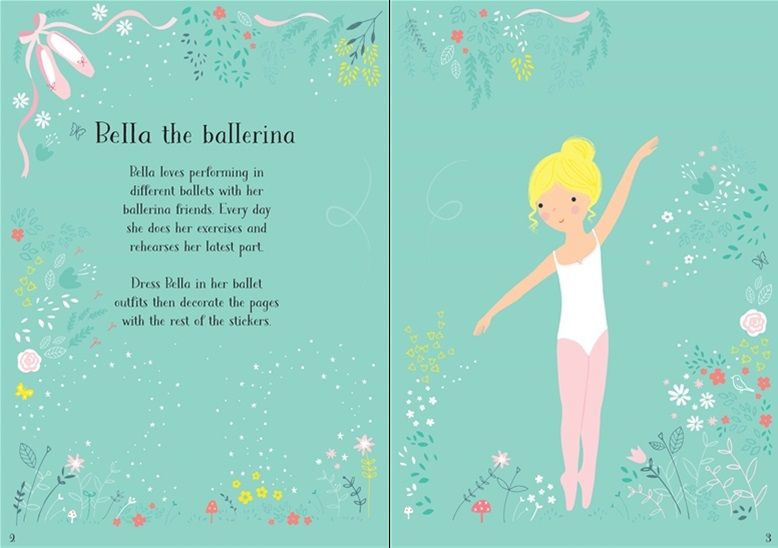 Baletul este o forma de arta care inspireaza, iar aceasta carte este conceputa special pentru a incuraja copiii sa exploreze lumea dansului. Fiecare pagina ii introduce pe cei mici intr-un univers plin de culori vibrante si fundaluri incantatoare, unde vor putea sa isi exprime stilul si sa isi dezvolte abilitatile artistice. Prin intermediul activitatilor interactive, copiii vor invata despre moda, autosine si creativitate, avand ocazia sa combine diferite abtibilduri pentru a crea tinute de vis.