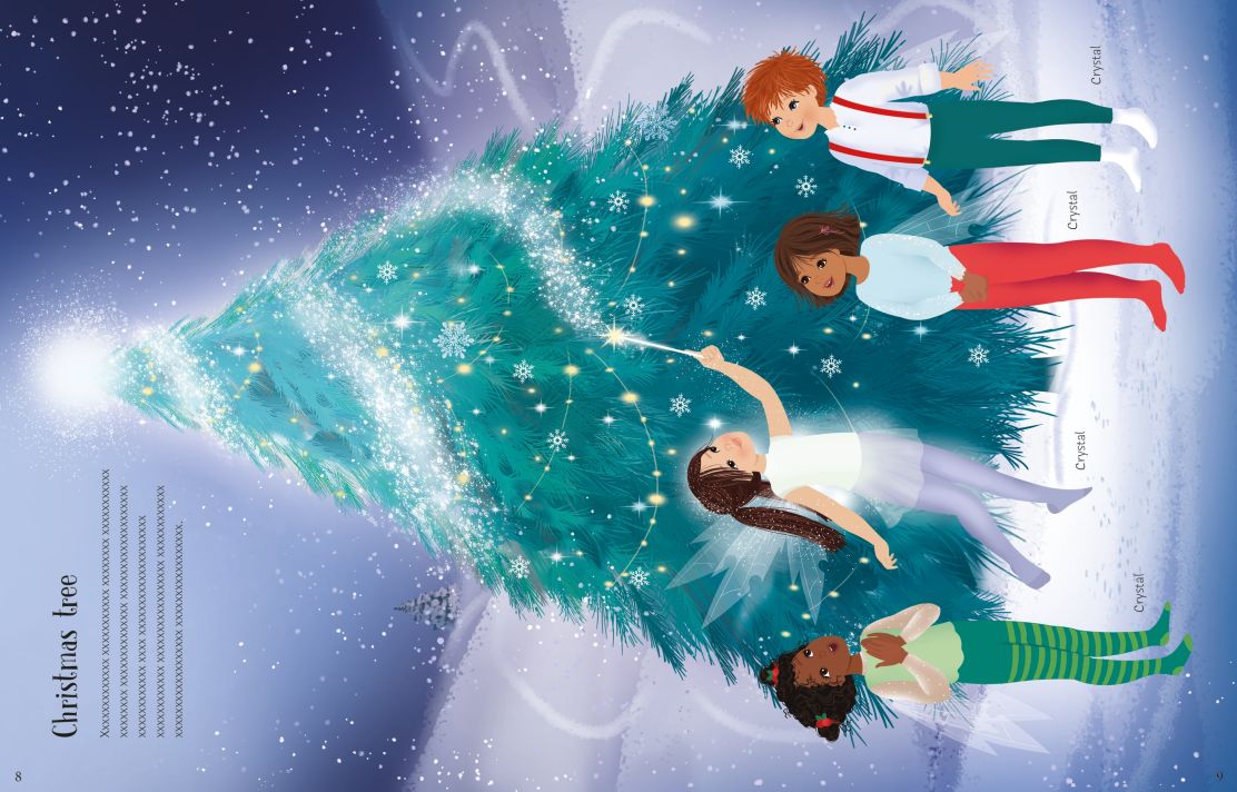 Aceasta carte ilustrata XXL de 44 de pagini este special creata pentru copii cu varste de 5 ani si mai mult. Fiind parte din celebra serie Sticker Dolly Dressing, cartea ofera o experienta interactiva si educativa, dezvoltandu-le creativitatea si imaginatia prin activitati distractive. Fiecare pagina este o fereastra catre o lume plina de zane, braduti de Craciun si peisaje de iarna, invitandu-i pe cei mici sa contribuie cu autocolantele la poveste.