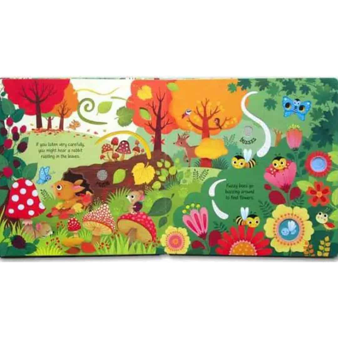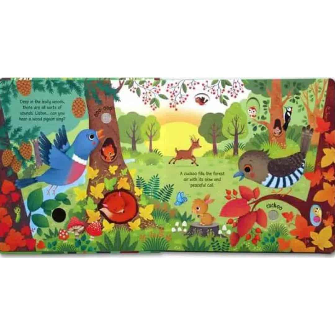 „Woodland Sounds” ii invita pe cei mici sa exploreze padurea intr-un mod inedit, apasand butoanele sonore din paginile cartii pentru a auzi cantecul pasarilor, fosnetul frunzelor si zgomotele animalelor. Aceasta carte senzoriala nu doar ca ofera distractie, dar si un mod excelent de a dezvolta cunostintele despre natura. Dedicata celor mai mici cititori, textul simplu si accesibil insoteste fiecare sunet, ajutandu-i pe copii sa inteleaga mai bine lumea din jurul lor.