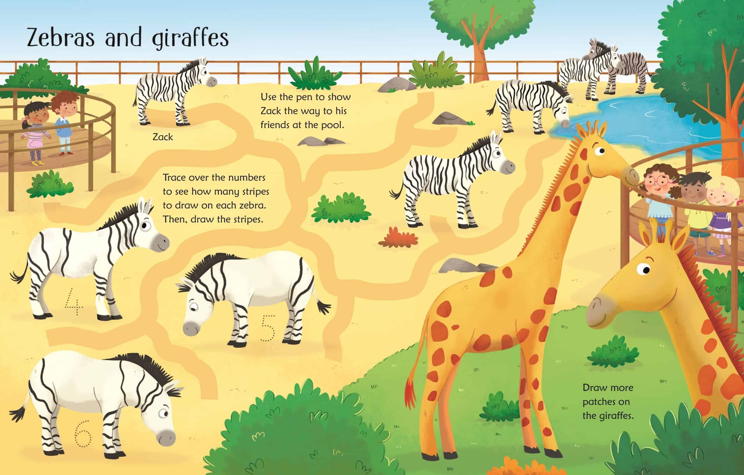 Carte WIPE-CLEAN ZOO ACTIVITIES de la Usborne este un companion ideal pentru micii aventurieri cu varsta de peste 3 ani. Aceasta carte interactiva pentru copii le va stimula imaginatia si creativitatea, oferindu-le ocazia de a explora lumea fascinanta a animalelor prin activitati antrenante si distractive.