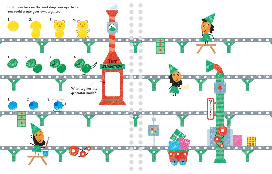 Carti cu activitati, FINGERPRINT ACTIVITIES SANTA’S WORKSHOP, Usborne, + 3 ani