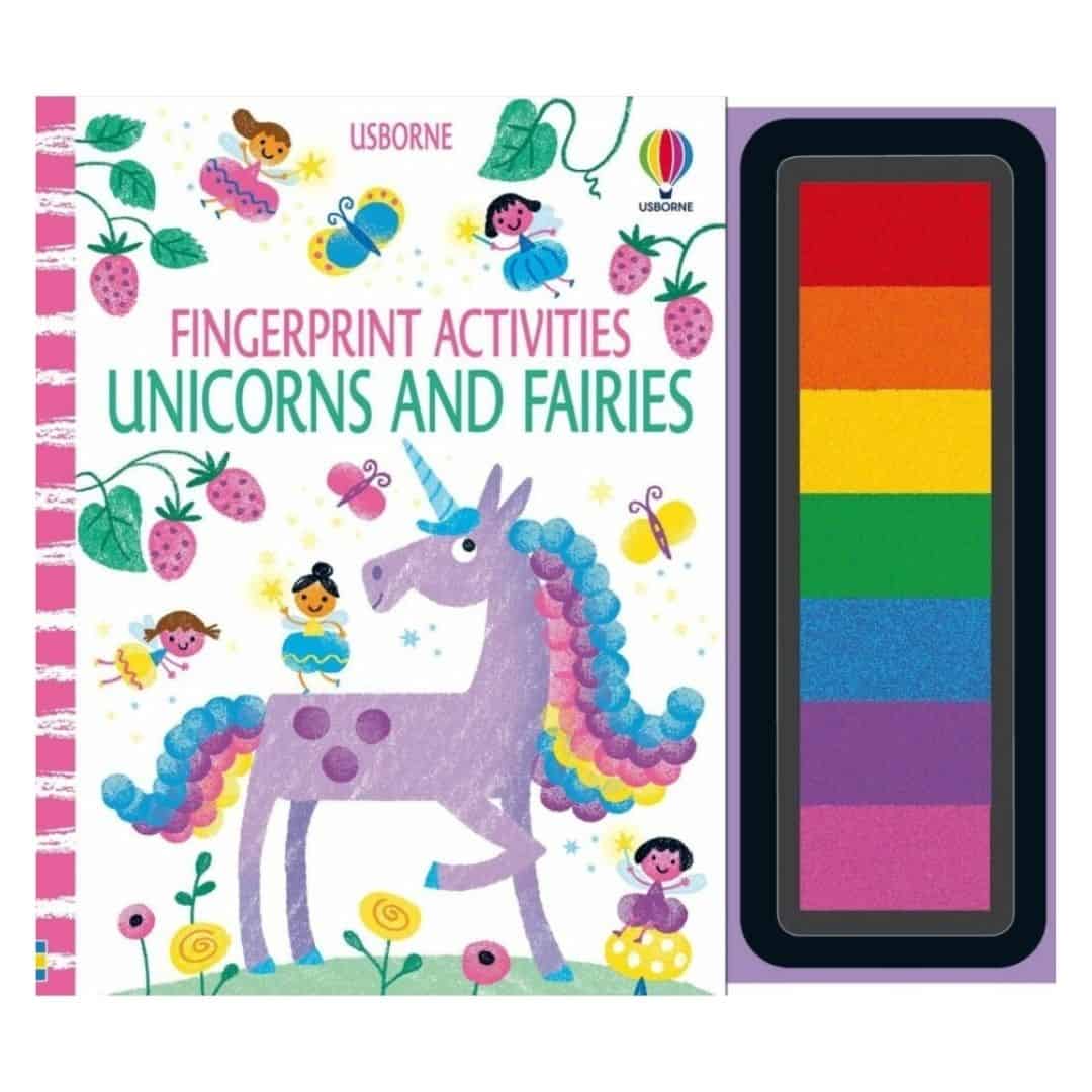 Carti cu activitati, FINGERPRINT ACTIVITIES UNICORNS AND FAIRIES, Usborne, + 3 ani